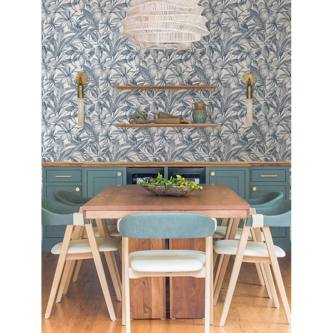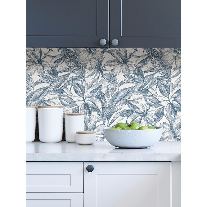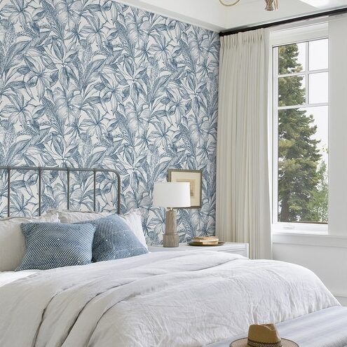 Details:Immerse yourself in tropical bliss with this peel and stick botanical design. The relaxing blue and white color palette gives this peel and stick wallpaper a refreshing look. Blue Canopy Peel and Stick Wallpaper comes on one roll that measures 20.5 inches wide by 18 feet long. Blue and white tropical leaves peel and stick wallpaper; Peel and stick to apply, pull up to remove; NuWallpaper is safe for walls and leaves no sticky residue behind; Easily repositionable while installing; NuWallpaper sticks to any smooth, flat surface – perfect for DIY projects; Ideal for rental or home decorating;Comes on a 20.5-in x 18-ft roll and covers about 30.75 sq. ft;Design repeat of 21-in;This product should NOT be applied to textured walls – smooth clean, dry, painted surface only (no Non-Stick paint or soap residue).Country of Origin: United Kingdom