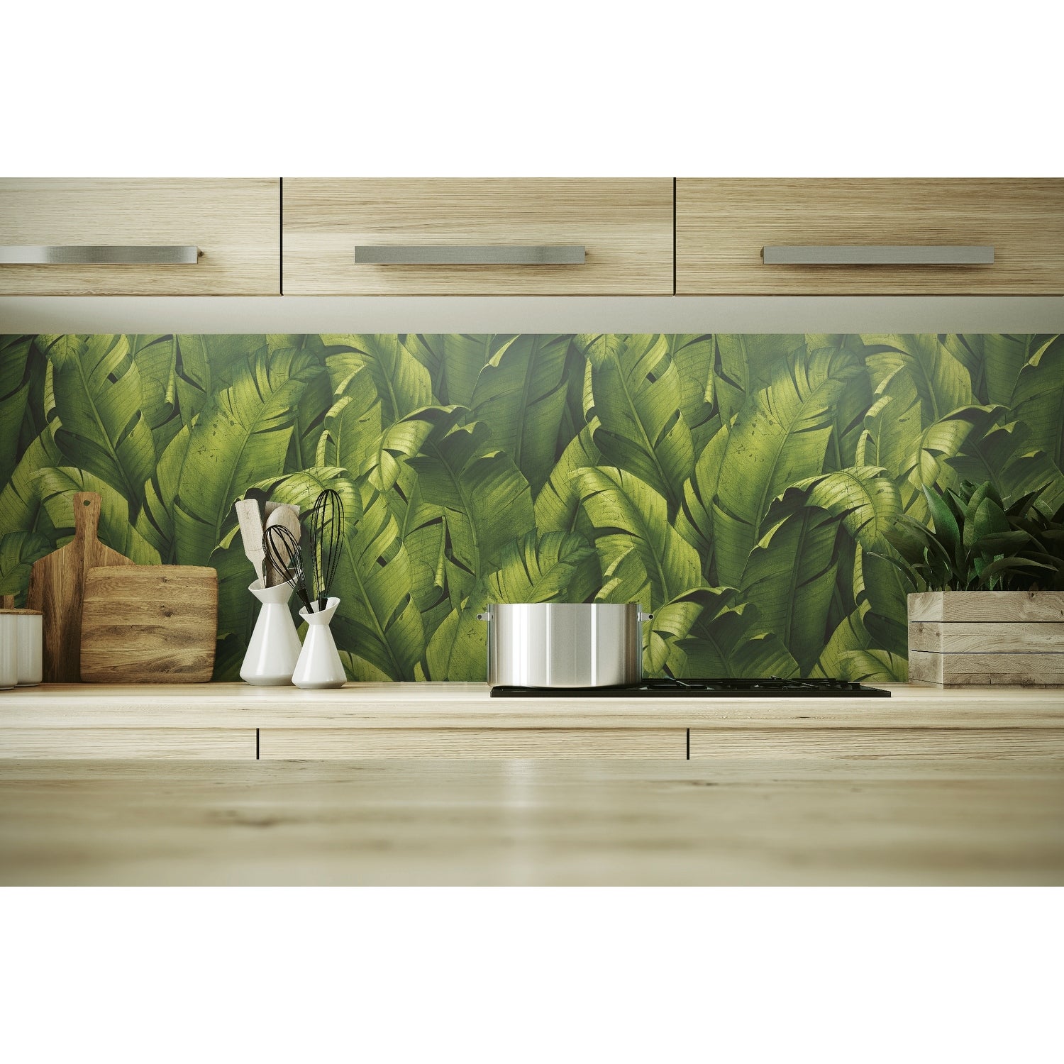 Details:Bring sunshine and the feeling of an endless paradise to your interior space with this Tropical Banana Leaves peel and stick wallpaper from Nextwall. Printed on smooth vinyl, our self-adhesive wallcoverings are perfect for renters and homeowners looking for an instant, DIY transformation to their interior space. With the same qualities and durability as permanent wallpaper, our products can be applied or easily removed in minutes making them ideal for both long term and temporary use.